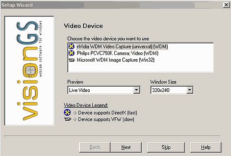Obwohl es aus Deutschland kommt, ist die Benutzerführung leider nur auf Englisch. Da nur wenige Einstellungen notwendig sind, ist dies aber kein echtes Problem! VisionGS erkennt automatisch, welche Videoquellen auf dem Rechner vorhanden sind. Es können sogar - das ist selten - mehrere Webcams gleichzeitig angeschlossen und verwaltet werden!