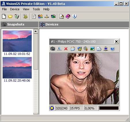 VisionGS ist ein vielseitiges Webcam Programm aus Deutschland, welches laufend weiterentwickelt wird. Für den Privatgebrauch kostenlos läuft es unter Windows 95, 98, Me, 2000 und XP. Wer noch mehr Funktionen braucht und keine gelegentliche Einblendungen von Werbetext möchte, kann für 27,-- Euro die Business Version erwerben [Link].