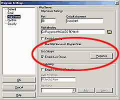 Mit Vision GS wird auch das sog. Live Streaming, d.h. die fortlaufende Übertragung eines Videosignals ins Internet möglich. Dazu ist im Programm ein eigener Web-Server (sog. HTTP-Server) eingebaut. Über ein mitgliefertes Java Applet wird das Videosignal in eine Webseite auf dem eigenen PC (= nicht beim Provider !!) integriert.