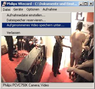 Natürlich könnt Ihr auch heiße "Privatvideos" mit einer Webcam aufnehmen. Viele Cams haben ein kleines Stativ dabei, so dass Ihr auch ohne einen extra Hobbyfilmer auskommt. Meist ist eine entsprechende Software dabei. So bei unserer Philips Cam das Programm VRecord. Wer noch keine Software hat, kann auch die Videoaufzeichnungsfunktion von VisionGS nutzen [Ausführlichen Bericht lesen] . Die Bedienung ist denkbar einfach: Unter dem Menü "Aufnahme" nur auf "Aufnahme starten" und schon heisst es "Ton ab! - Ton läuft" - Film ab! Film läuft!" Am Ende kann man das Video im AVI Format speichern und mit jeder Videobearbeitungssoftware nachbearbeiten.